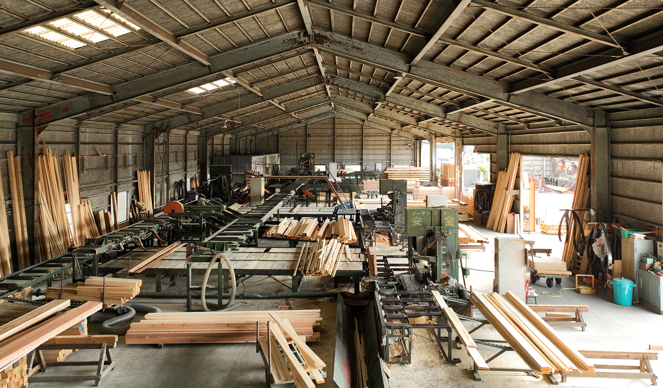 主に高知県産の杉、桧を製材しています。建築用材が中心ですが、規格サイズのみならずお客様のニーズにあったオーダーサイズにも的確に対応いたします。高品質な製材を目指すべく、長年培われた職人の技術を継承しつつ新たな技術への挑戦も日々行っています。