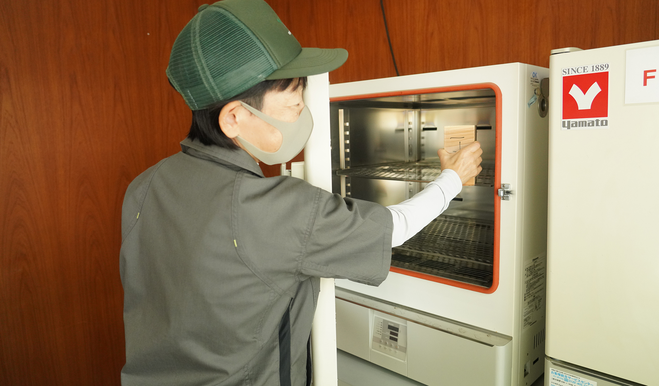弊社では「除湿式低温乾燥機」を用いることにより、従来より短時間で木の持つ自然な趣きを最大限に生かした状態に乾燥することができます。